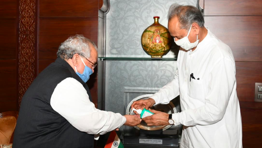 Rajasthan CM Ashok Gehlot with Governor Kalraj Mishra, on July 18. Photo: Twitter/@ashokgehlot51