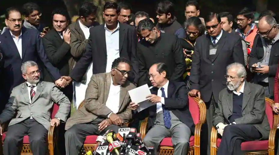 The 2018 press conference by Justices Madan B. Lokur, J. Chelameswar, Ranjan Gogoi, and Kurian Joseph.
