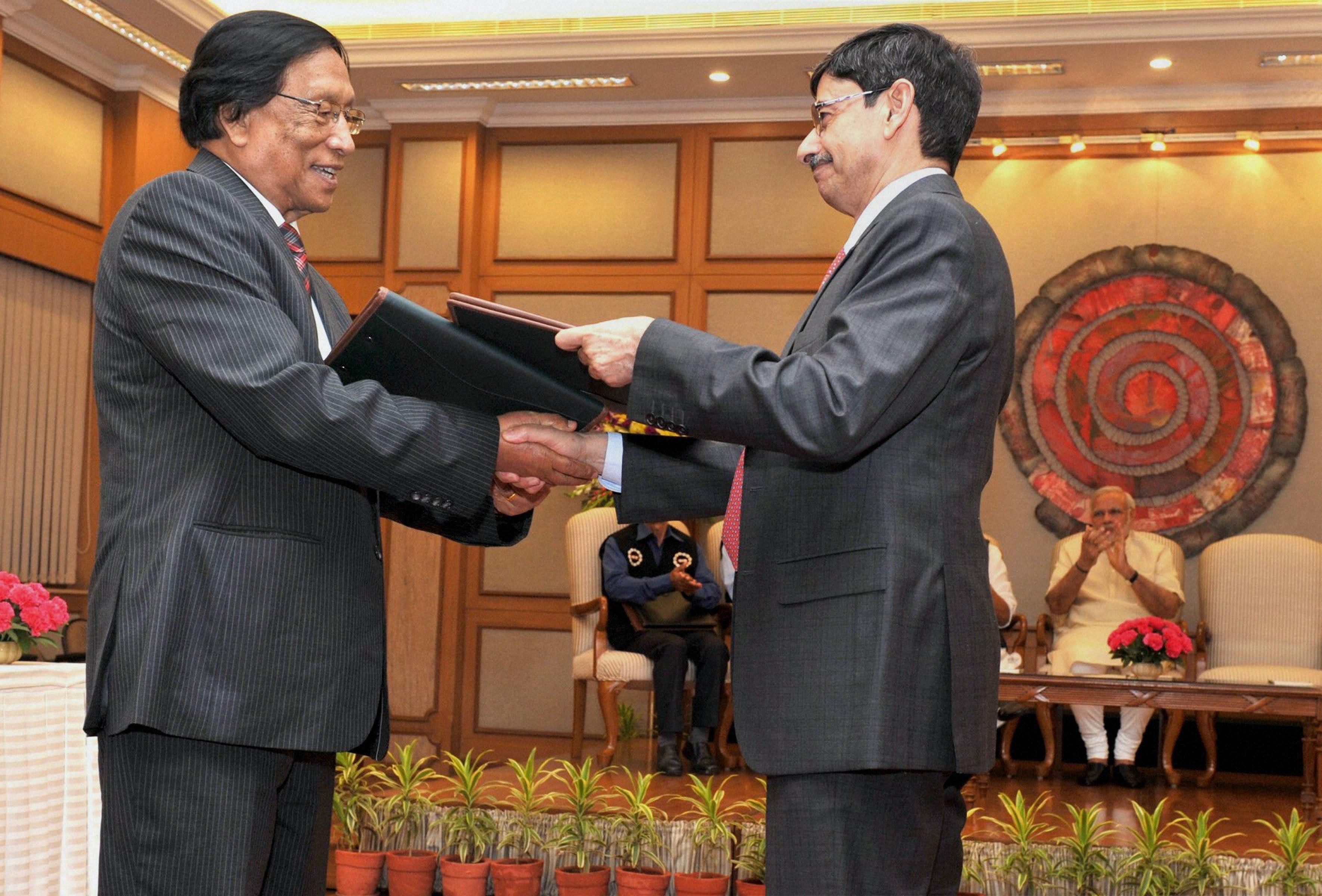 Prime Minister Narendra Modi witnessing the exchange of historic peace accord between the government of India and the National Socialist Council of Nagaland in New Delhi. Credit: PTI