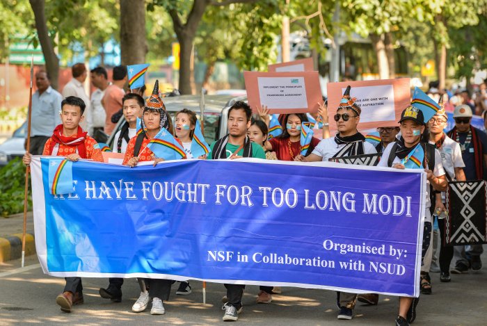 Delhi-based student from Nagaland stage a protest march demanding solution to the Naga peace talks. Photo: PTI