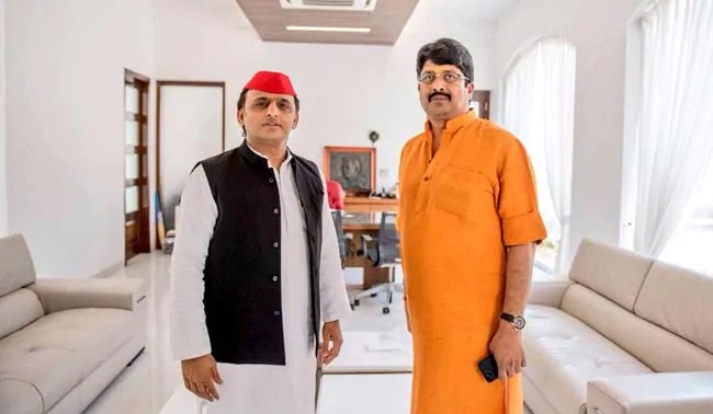 Akhilesh Yadav with Raja Bhaiya in 2018. Photo: Twitter/yadavakhilesh.
