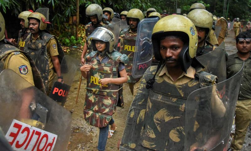 - At least a hundred policemen were accompanying the two women, one of whom was given protective police gear, during the trek from Pamba to the Sannidhanam.