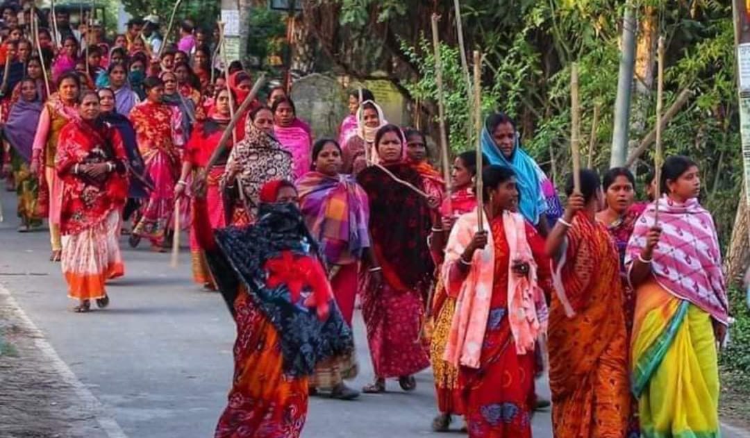 Women protesting at Sandeshkhali. Photo: Joydeep Sarkar