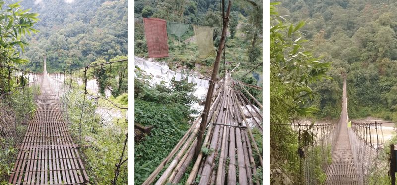 A friend who lives in this region narrated a harrowing story of carrying the corpse of his cousin through this hanging bridge. The person who passed away at Lingthem Health Centre had to be carried through the 200 metre hanging bridge on a stretcher. The bridge kept swaying and they could not hold anywhere in order to keep their balance. They thought it was a never-ending act.