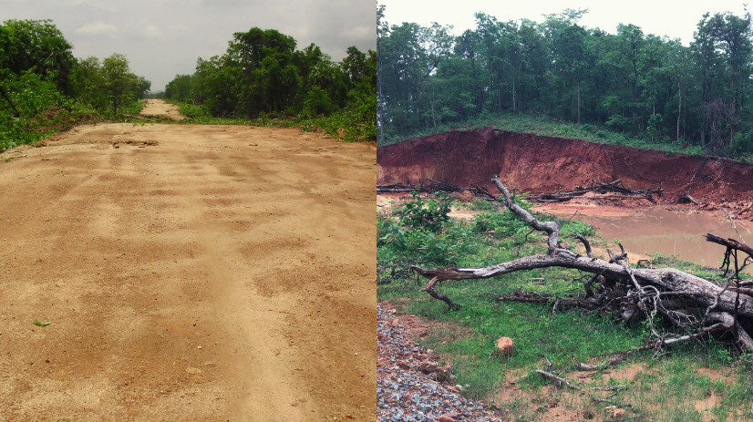 The environmental havoc the road has created is already starkly visible with stretches of forest cut and hillsides hacked to excavate earth for the road. A couple of them told me the road functioned like a bund stopping the water flowing on either side so apart from the road itself taking over agricultural land, fields on either side become waterlogged and unusable. It is like a machete cleaving through a living body.