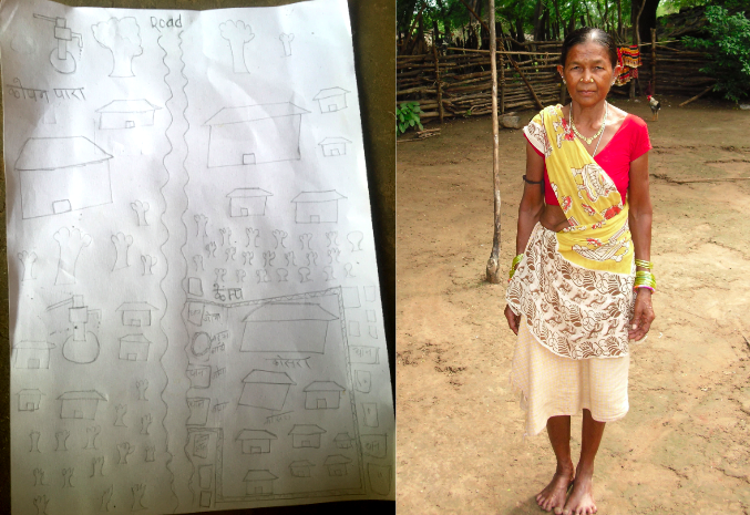 Hand sketch of the camp and (right) Korsa Bhime. Photos: Nandini Sundar