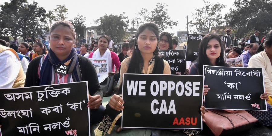 Activists of All Assam Students Union (AASU) protest against the Citizenship Amendment Act CAA in Guwahati Saturday Jan. 18 2020. Photo: PTI/File