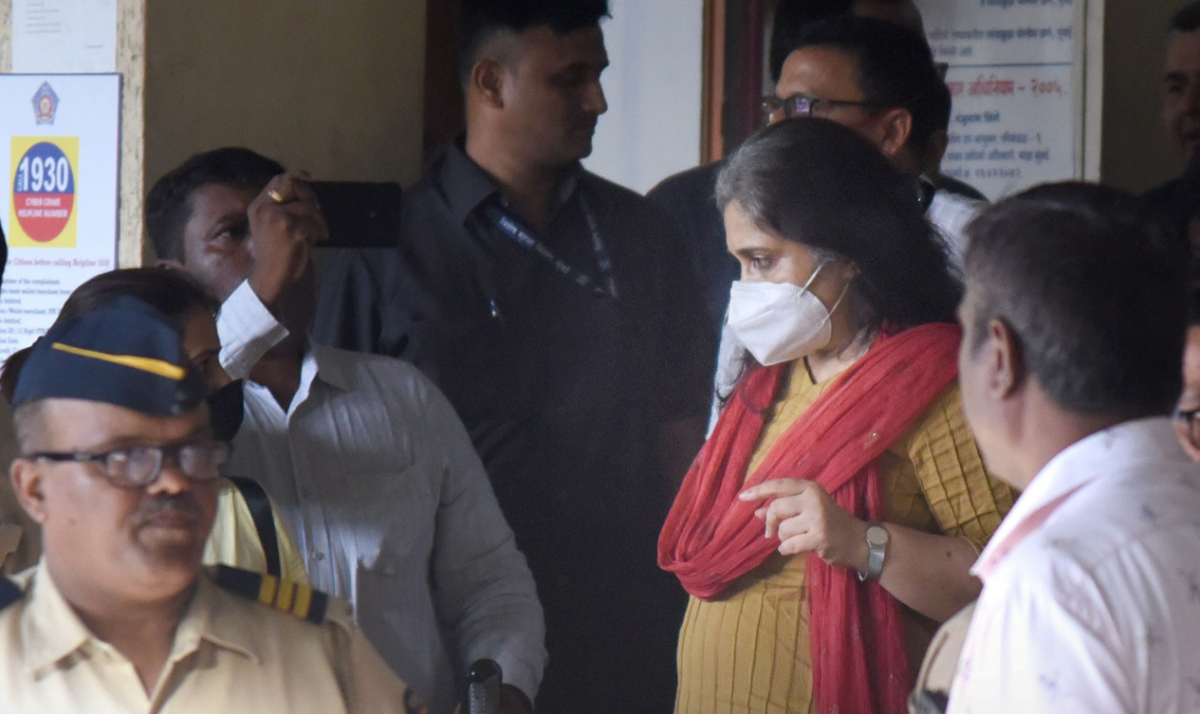 Mumbai: Activist Teesta Setalvad at Santacruz police station after being detained by Gujarat police, in Mumbai, Saturday, June 25, 2022. Photo: PTI