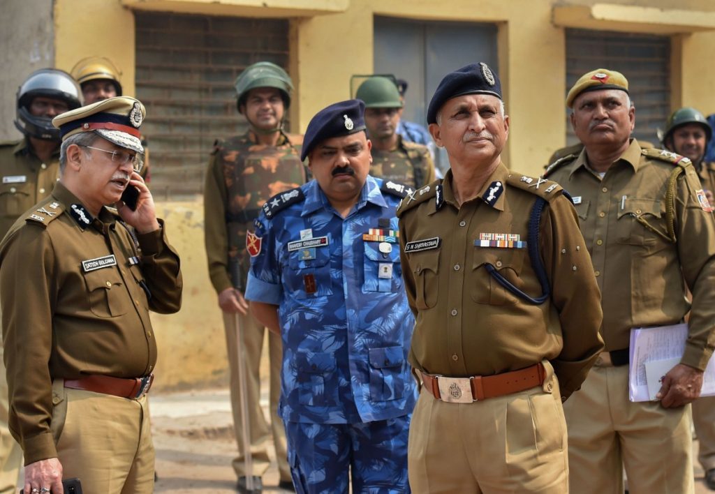 Delhi police special commissioner (law and order) S.N. Shrivastava and Delhi police special commissioner (crime) Satish Golcha visit riot-affected areas. Photo: PTI