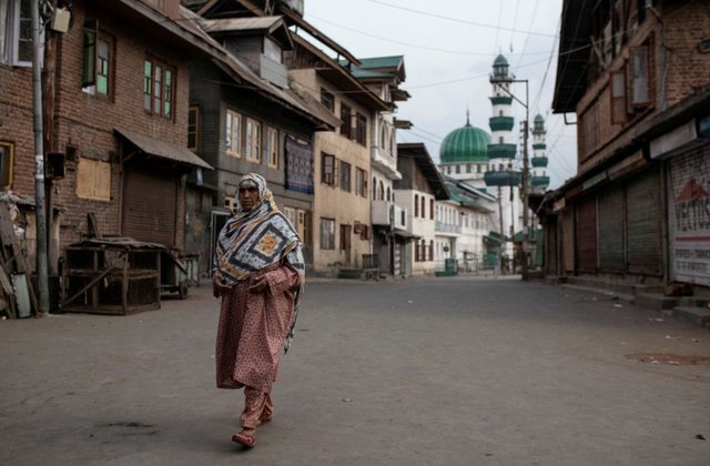 A Kashmiri woman walks through an empty street in Srinagar's Anchar neighbourhood, during restrictions following the scrapping of the special constitutional status for Kashmir, September 20, 2019. Photo: Reuters/Danish Siddiqui/Files