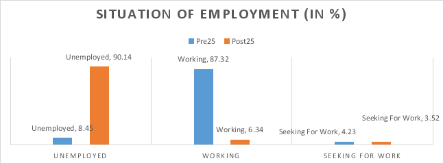 Out of 177 respondents, 96% said they had migrated to urban cities in other states in their last employment prior to the lockdown. Around 82% of respondents lost their jobs and returned to their home districts after the lockdown was announced. Around 66% of the migrants returned home with no wages, while 14% received full wages and 21% received partial wages.