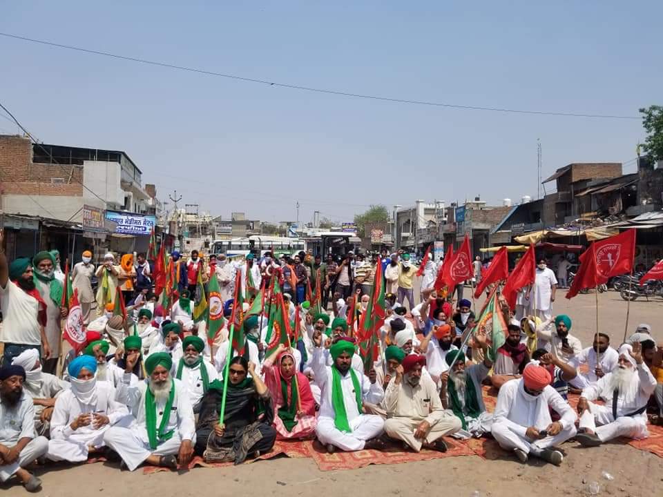 Protestors gather at the Old Bus Stand in Patiala as part of the farmers' anti-lockdown march. Photo: By arrangement