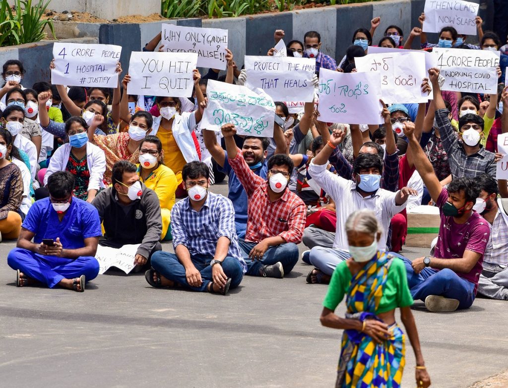 On Tuesday night, a junior doctor at Hyderabad's Gandhi hospital was attacked by relatives of a COVID-19 patient who died earlier that day. Hours later, nearly 300 doctors at the hospital started protesting.