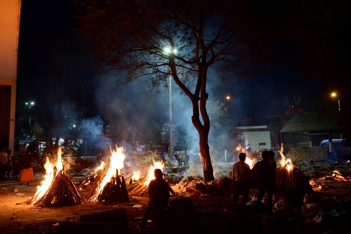 Mass cremation of COVID-19 victims at a crematorium as coronavirus cases surge, in New Delhi, Saturday, April 24, 2021. Photo: PTI/Kamal Kishore