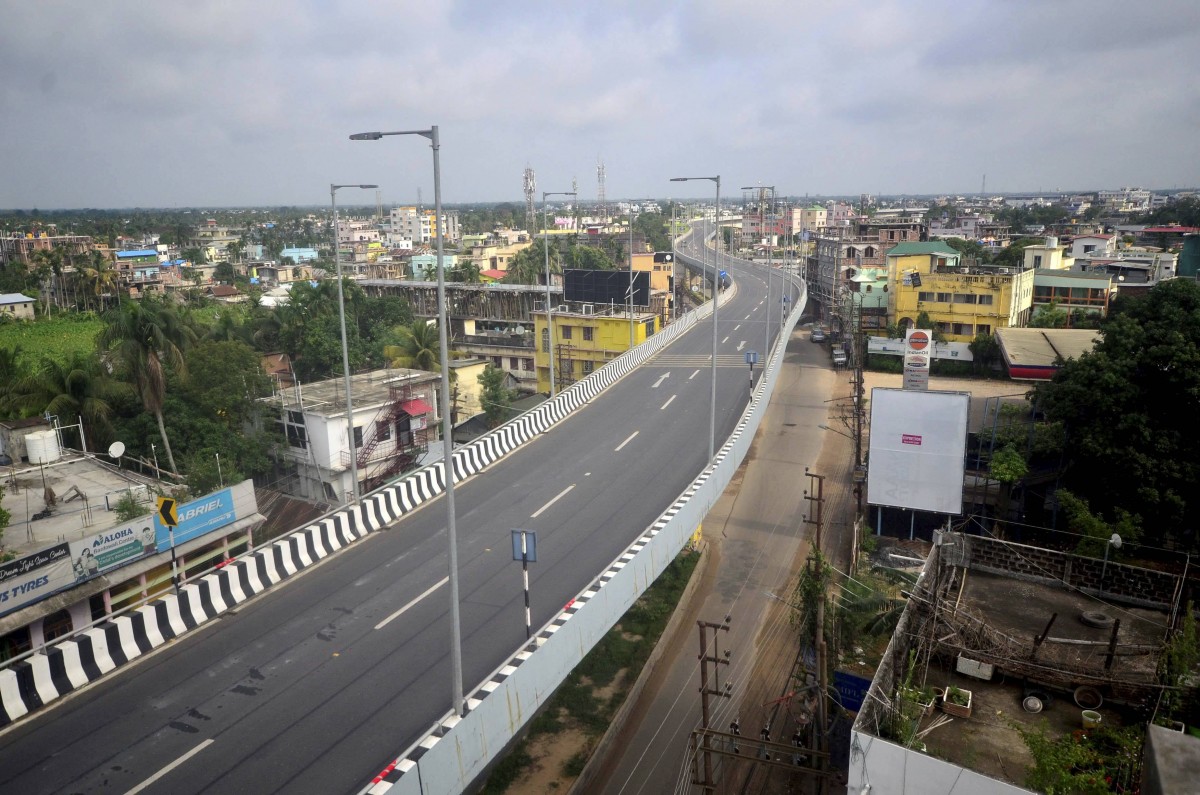 A deserted flyover during the 10-day partial lockdown imposed to curb the spread of Covid-19, in Agartala, Monday, May 17, 2021. Photo: PTI.