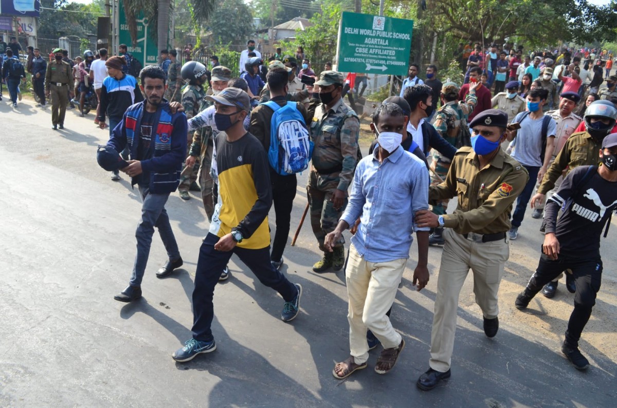Agartala: A large number of candidates whose names did not appear in the merit list for jobs in Tripura State Rifles (TRS), the state-owned paramilitary forces, held widespread protests in various parts of the state, alleging that the local leadership made false promises of recruitment.