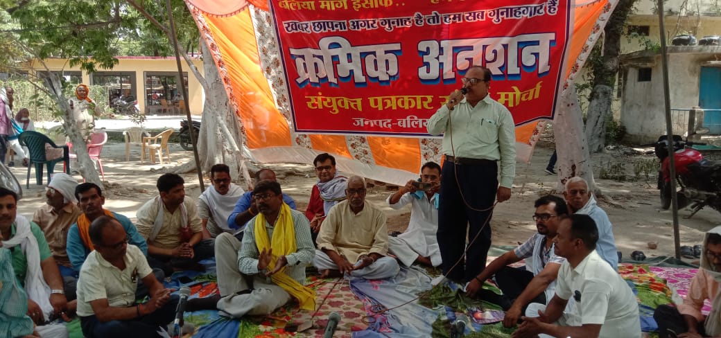 On receiving the news of the correspondents’ detention, a large number of journalists gathered outside the police station and staged a protest against their arrest. A sit-in protest was organised which turned into a relay hunger strike from April 11. To hold an organised movement, the journalists formed the Sanyukt Patrakar Sangharsh Morcha in which many journalist organisations joined in. Students, advocates, political parties and even businessmen demonstrated in support of the arrested journalists. Traders' associations called for a Ballia bandh on April 6, which received widespread support. The effects of the bandh were felt across the district.