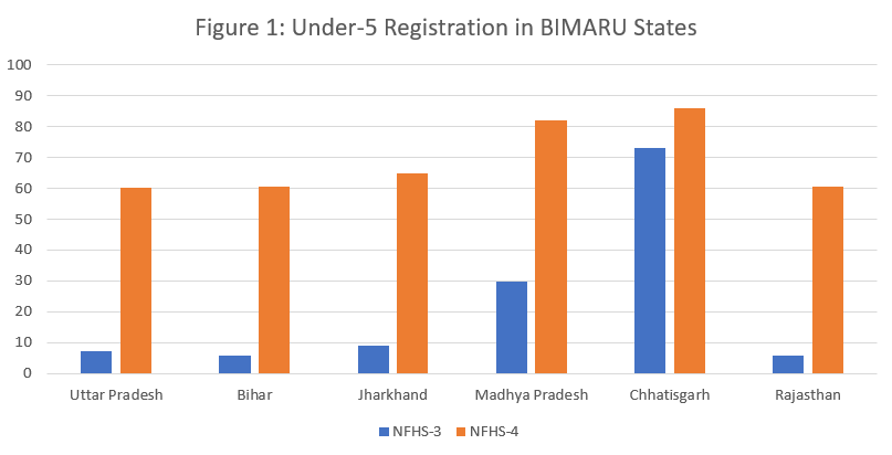 For example, the proportion of children under five years of age, whose births were registered, increased from a mere 7% in 2005-06 to over 60%. Among its neighbours, only Bihar has a similar track record.