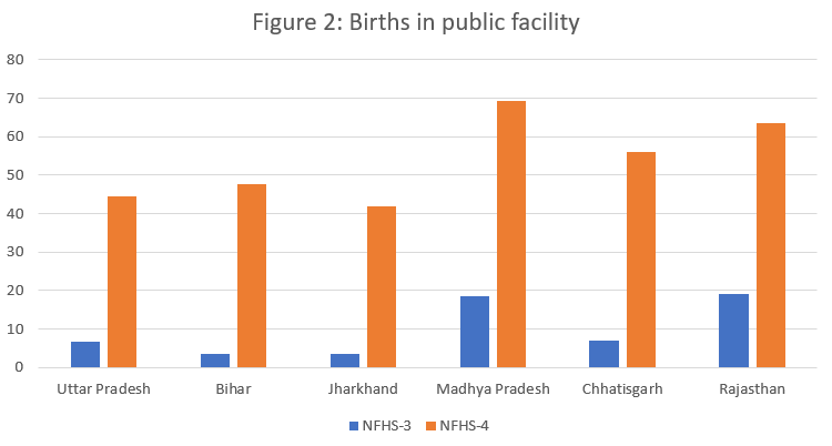 The proportion of births in a public facility similarly increased from 6.6% in 2005-06 to over 44% in 2015-16.