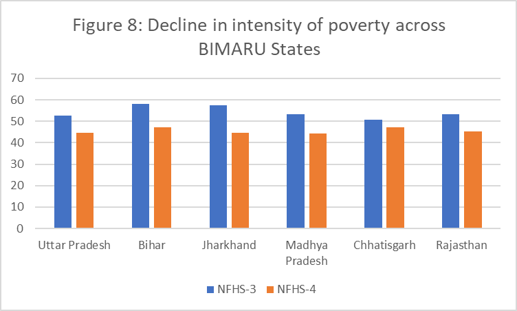 It also reduced the intensity of multidimensional poverty. Alongside Jharkhand, UP reported the lowest intensity of multidimensional poverty among the BIMARU States.