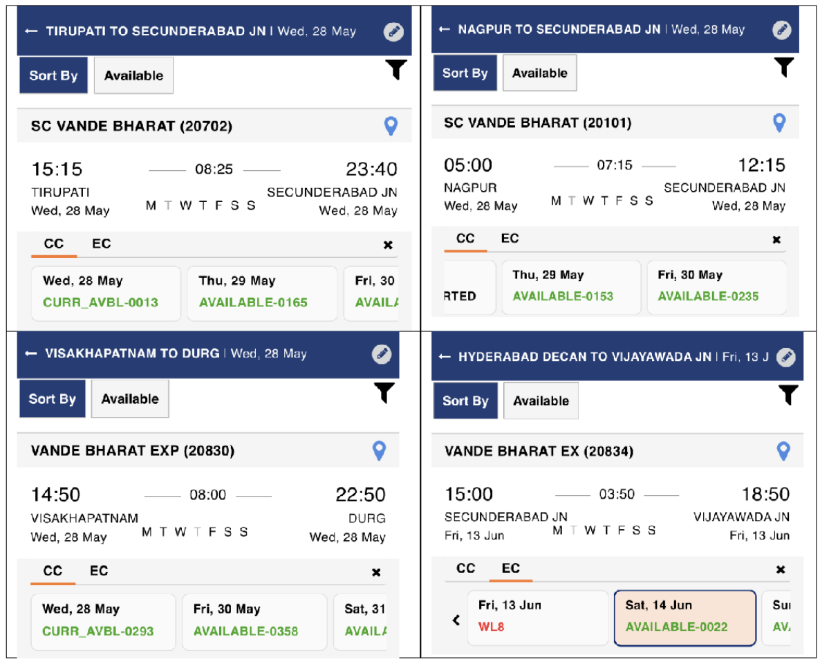 Chart: Availability on some Vande Bharat trains a day before scheduled departure