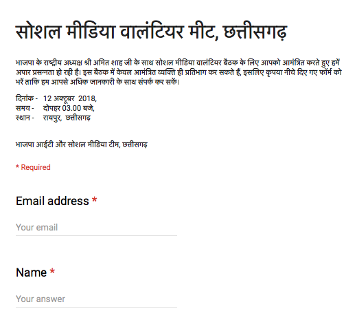 Raipur: An invite has been doing the rounds in e-mails, Facebook messages and WhatsApp accounts of select people in Chhattisgarh, urging them to fill up a form if they want to meet BJP president Amit Shah in a closed-door meeting. The recipients are not selected randomly; they have been approached after a careful scanning of their social media accounts. Taken into consideration are the frequency of their posts on social media, 'like'-ability and reach.