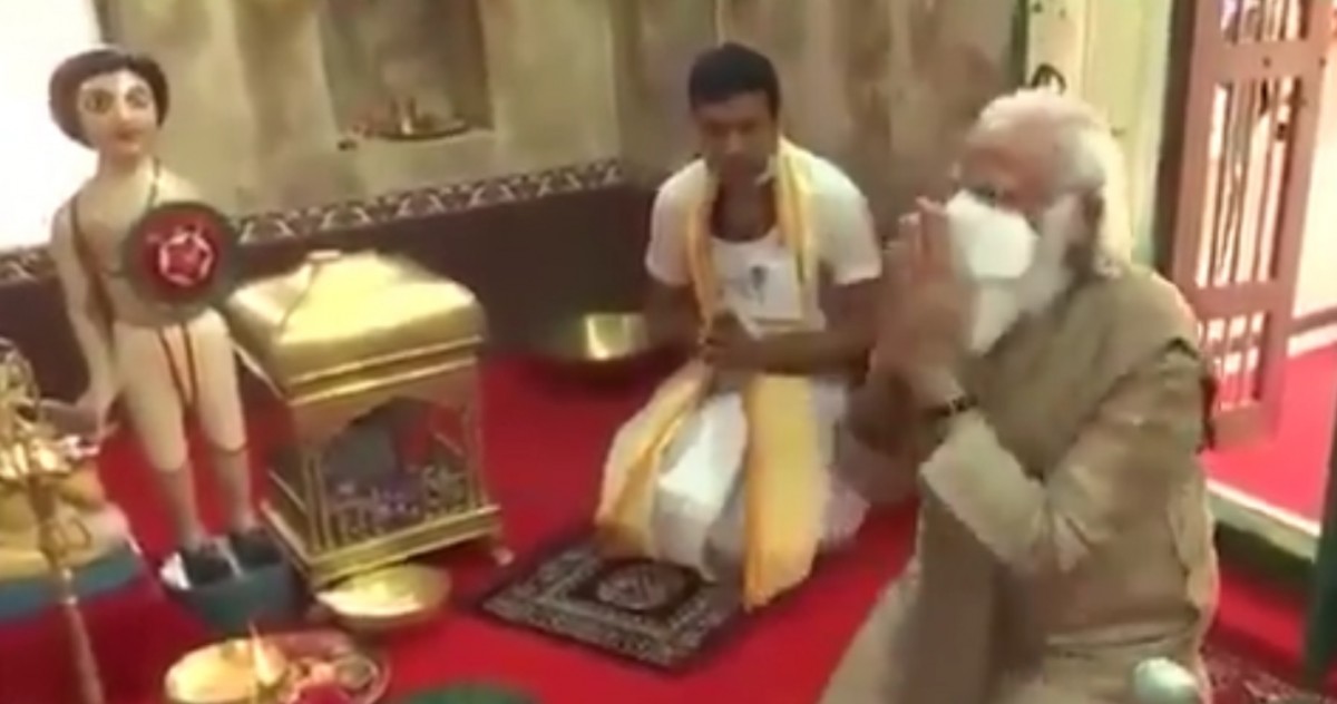 Prime Minister Narendra Modi at the Hari Mandir in Orakandi, Bangladesh. Photo: Screengrab/@MEAIndia