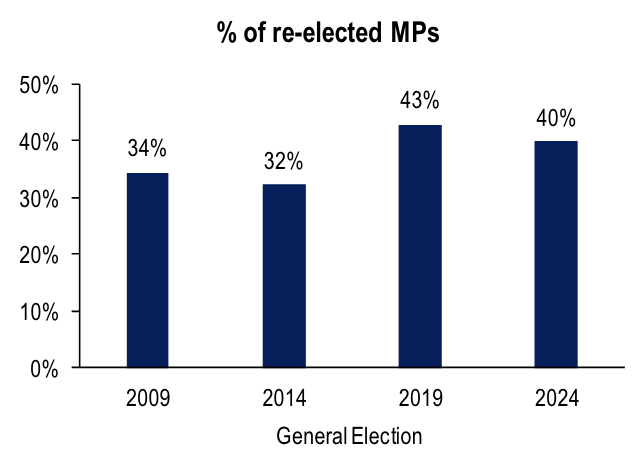 216 sitting MPs were re-elected. Of these, eight changed their constituency. One MP was re-elected from two constituencies, including the earlier one.
