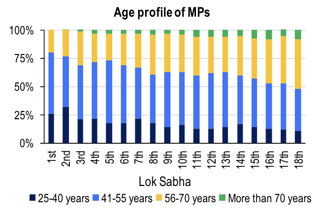 The average age of MPs elected to the 18thLok Sabha is 56 years; this was 59 years in the 17th Lok Sabha.