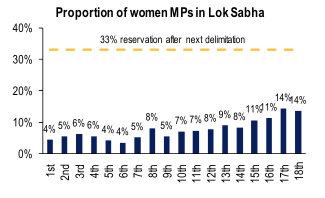 While there has been a slow increase in the number of women in Lok Sabha over the years, India still lags behind several countries. For example, 46% of MPs in South Africa, 35% in the UK, and 29% in the USA are women.