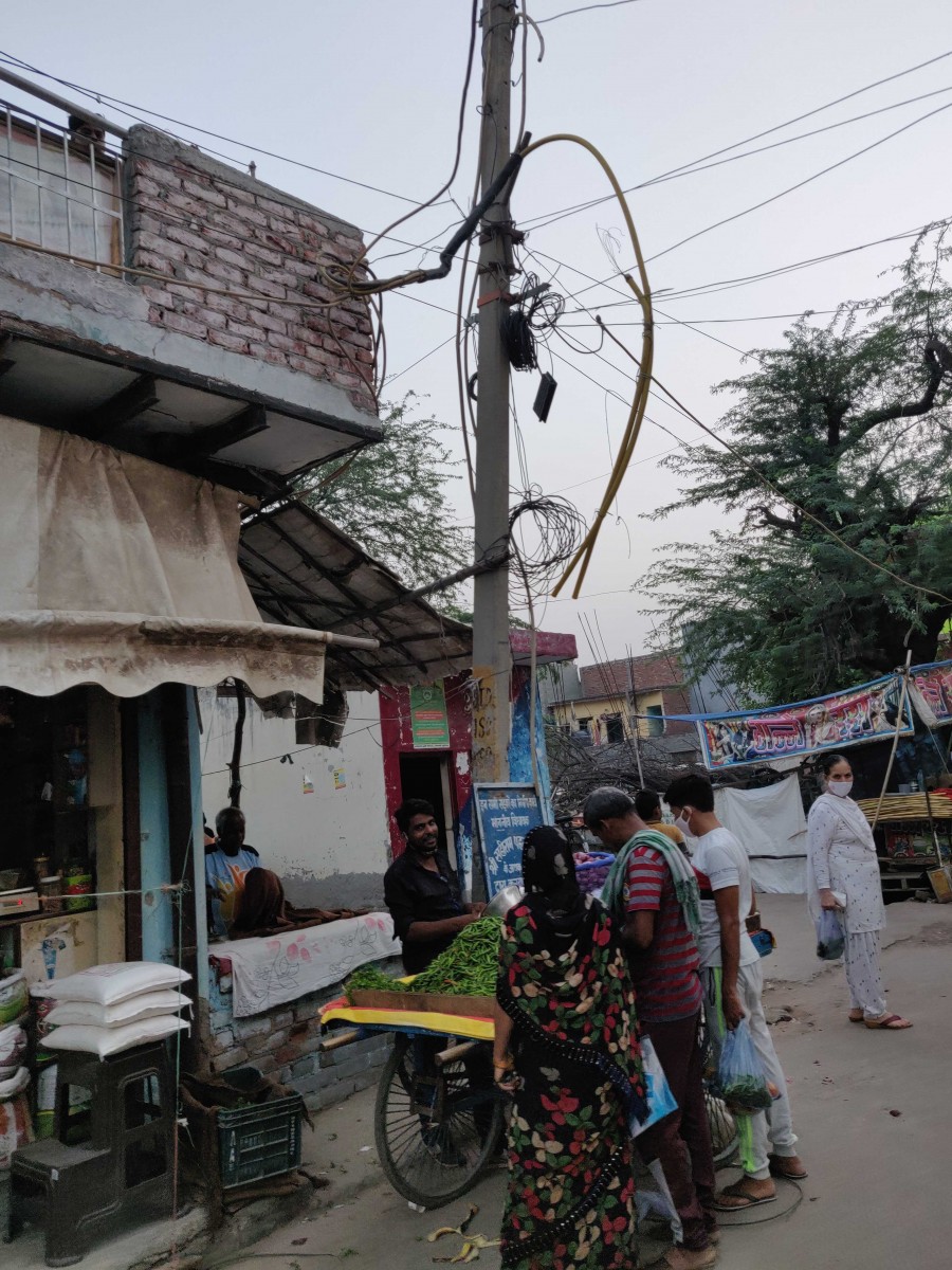 Two electric cables installed by the Delhi Govt were cut last week, removing the electricity from Khori Gaon. Photo: Naomi Barton