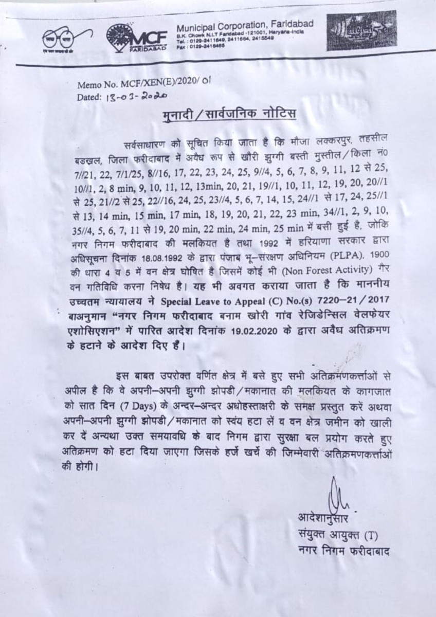 After the February 2020 order of the Supreme Court, these faulty notices were issued in March 2020 and June 2021. The March notice came days before the Janta curfew was announced. It gave the residents a grand period of seven days to produce their non-existent ownership documents to the government to avoid losing their homes.