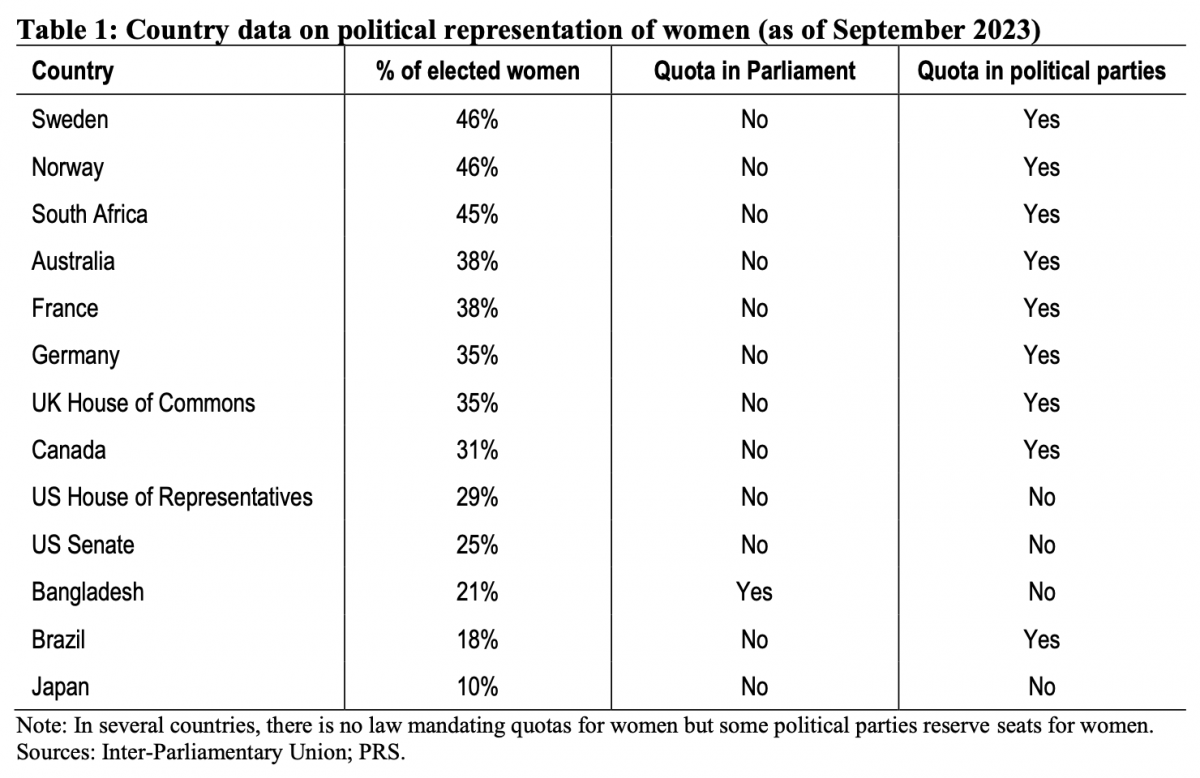 ▪ Commencement of reservation: The reservation will be effective after the census conducted after the commencement of this Bill has been published. Based on the census, delimitation will be undertaken to reserve seats for women. The reservation will be provided for a period of 15 years. However, it shall continue till such date as determined by a law made by Parliament.