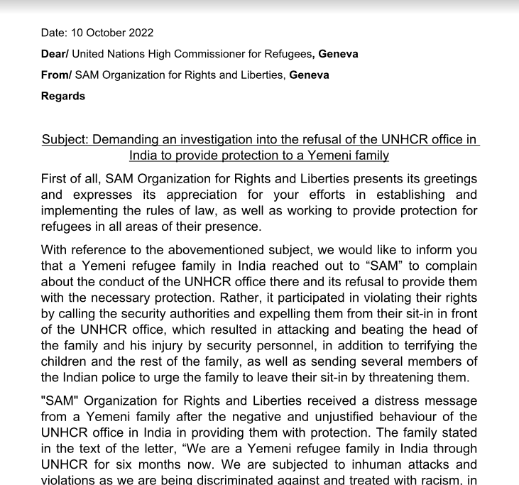 The family alleged that they were assaulted by the Delhi Police and the UNHCR's security guards in Vasant Vihar on September 27.