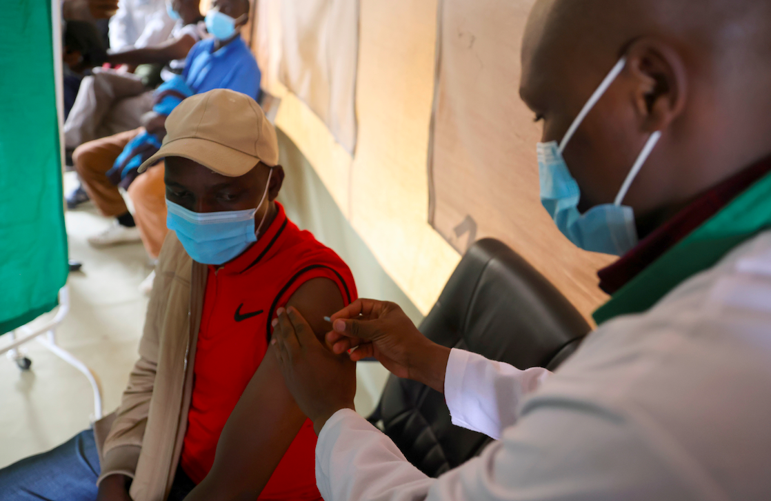 A healthcare professional administers a dose of AstraZeneca (COVID-19) vaccine at the Narok County Referral Hospital, in Narok, Kenya, December 1, 2021. Picture taken December 1, 2021. REUTERS/Baz Ratner