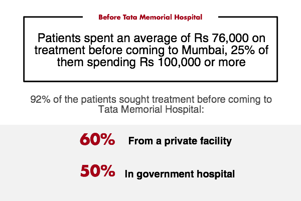 They spent, on average, Rs 76,000 on treatment before coming to Mumbai, with 25% of them spending Rs 100,000 or more.