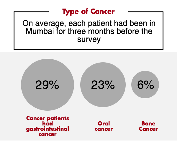 We found most of the patients living on the footpath were from outside the state of Maharashtra, had been living in Mumbai for the previous three months and most were daily wage labourers who had exhausted their savings and borrowed Rs 75,000, on average, for their treatment.