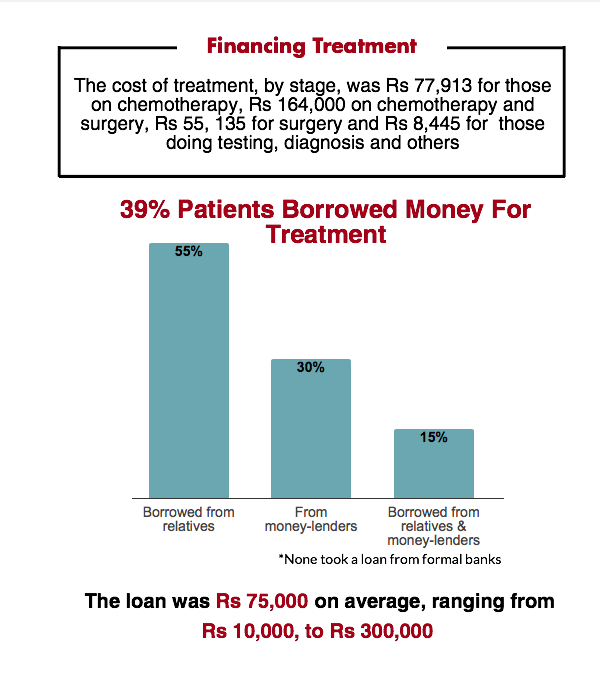 Each patient, as we said, reported losing an average of Rs 55,000 because of cancer and the resultant displacement.