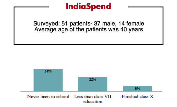 Our survey found most patients were, with an average age of 40, relatively young; three were younger than 18 and one was over 60. Of these, 34% had never been to school, while 22% had a class VII education or less, and no more than 8% had completed class X.