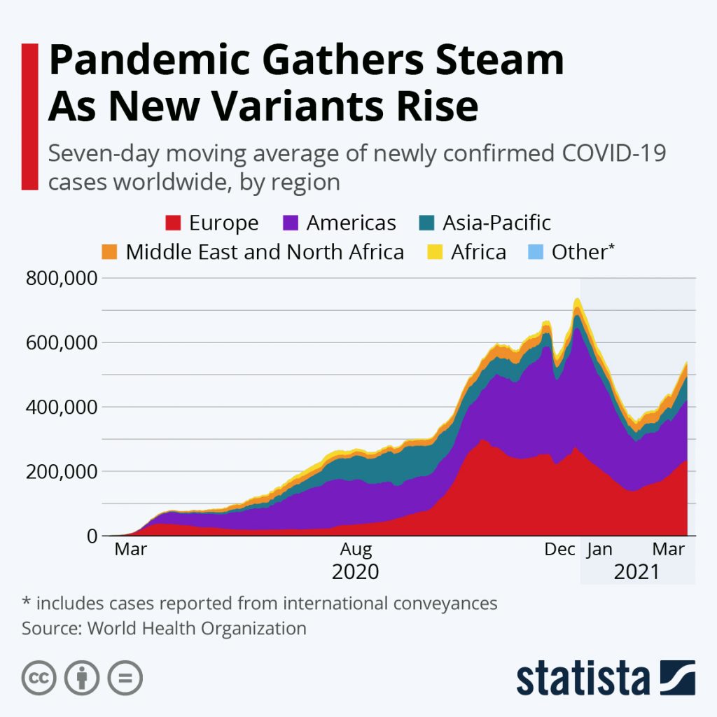 Chart: COVID-19 Pandemic Gathers Steam Once More as New Variants Rise