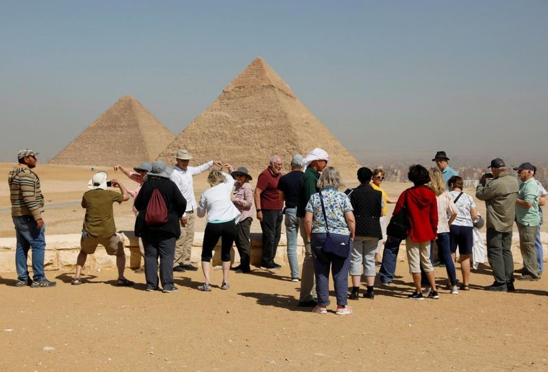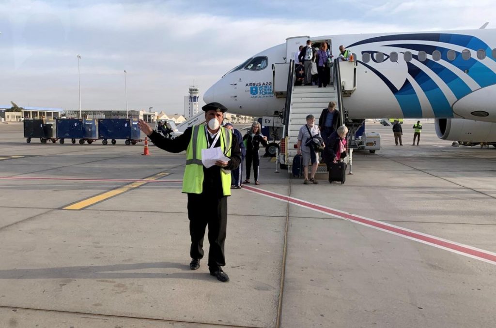Passengers, some of them wearing protective masks, following an outbreak of the coronavirus disease, arrive at Luxor International Airport, March 9, 2020. Photo: Reuters/Mohamed Abd El Ghany