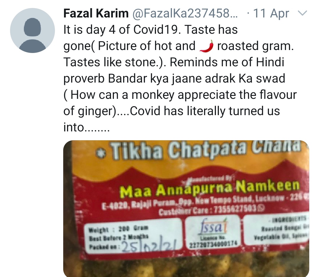Dr Fazal Karim describing his loss of taste on day 4 of testing COVID-19 positive.