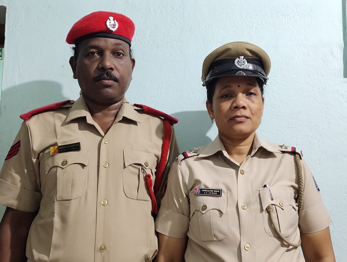 Both Bhavani Sankar Naik, a leading fireman at the Fire Station in Bhubaneswar Secretariat and Pankajini Naik, an Assistant Sub-Inspector, Bhubaneswar Police Commissionerate, Odisha are on round-the-clock duty. Photo: Special arrangement