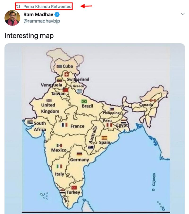Chief Minister of Arunachal Pradesh Pema Khandu retweeted Madhav’s tweet.