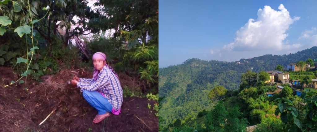 In February 2020, Rano Singh of Almora district gave birth on the way to the hospital, 13 kilometres from Siwali, her village in the mountains (right). Photo: Jigyasa Mishra/People's Archive of Rural India