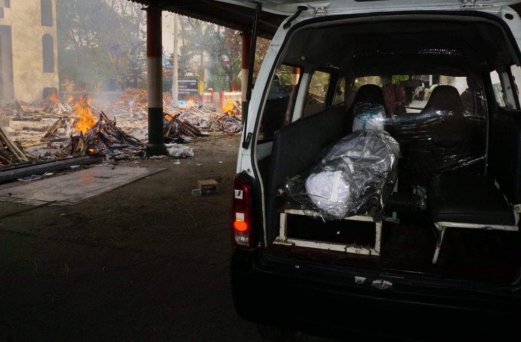 Many people at the crematorium are not wearing personal protective equipment (PPE), which the guidelines mandate. When I asked a person who had arrived to oversee a cremation, he said, “We spent a huge amount of money to buy medicines and oxygen, but it was not enough. We do not have the money to procure PPE kits. As long as the body is cremated, that is enough.”