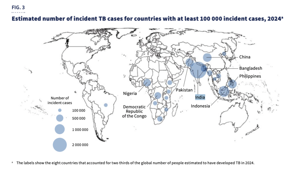 In addition, four countries accounted for more than half of the global number of people estimated to have developed MDR/RR-TB in 2024: India (32%), China (7.1%), the Philippines (7.1%) and the Russian Federation (6.7%).