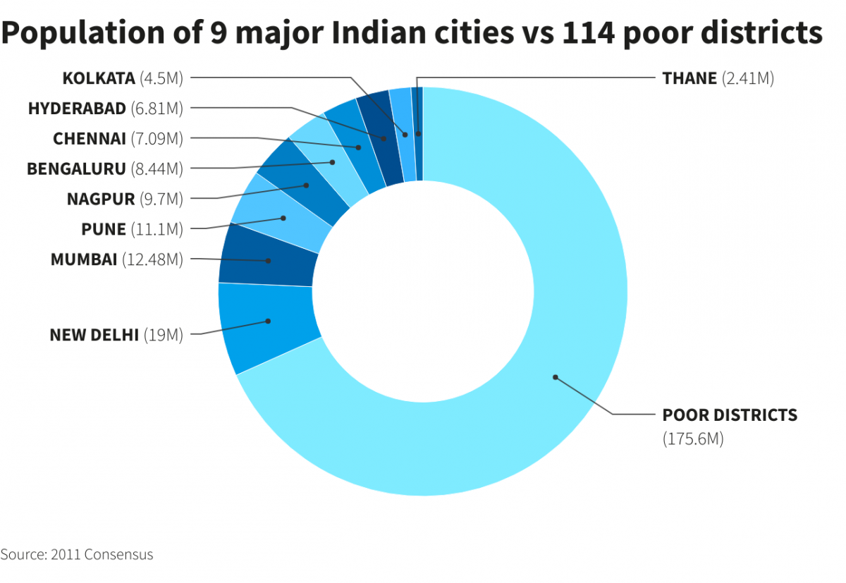 In 114 of India's least developed districts – collectively home to about 176 million people – authorities have administered just 23 million doses in total.