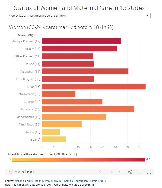 States with the highest IMR--Madhya Pradesh, Assam, Uttar Pradesh, Rajasthan--also have fewer women with more than 10 years of education and a higher proportion of child marriages.