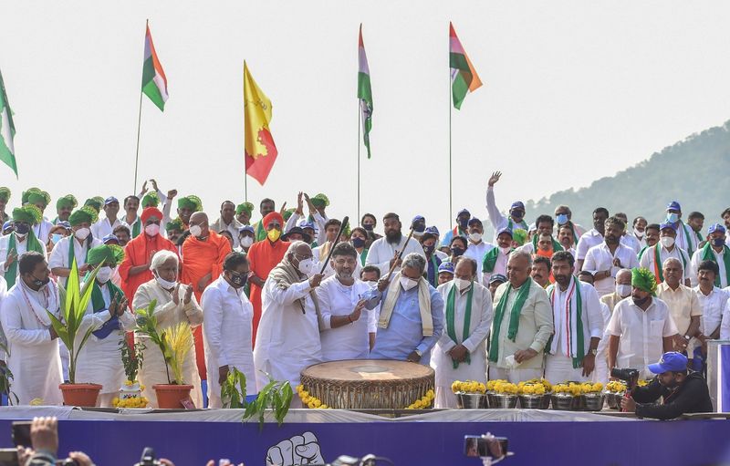Bengaluru: The Opposition Congress' padayatra (march) demanding the implementation of the Mekedatu reservoir project across the Cauvery river entered the second day on Monday, even as the police has booked senior party leaders including Siddaramiah and D.K. Shivakumar for taking out the protest defying Covid-19 curbs.
